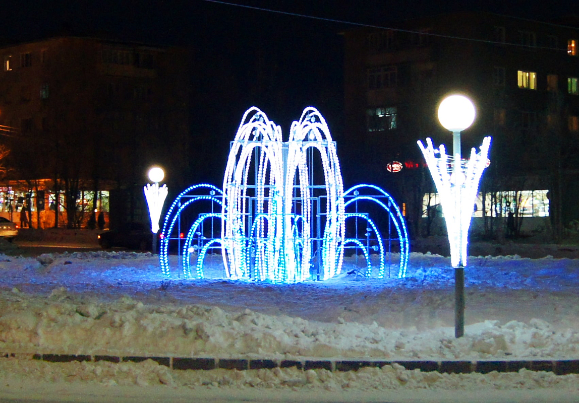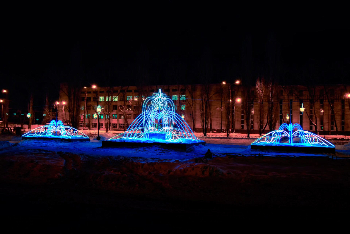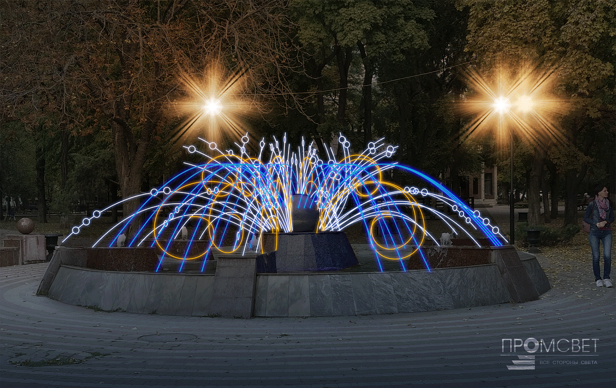 Создадим неповторимую праздничную атмосферу с помощью различного вида фонтанов, консолей, перетяжек и авторских светодиодных конструкций, реализуем проект оформления любого масштаба и сложности.