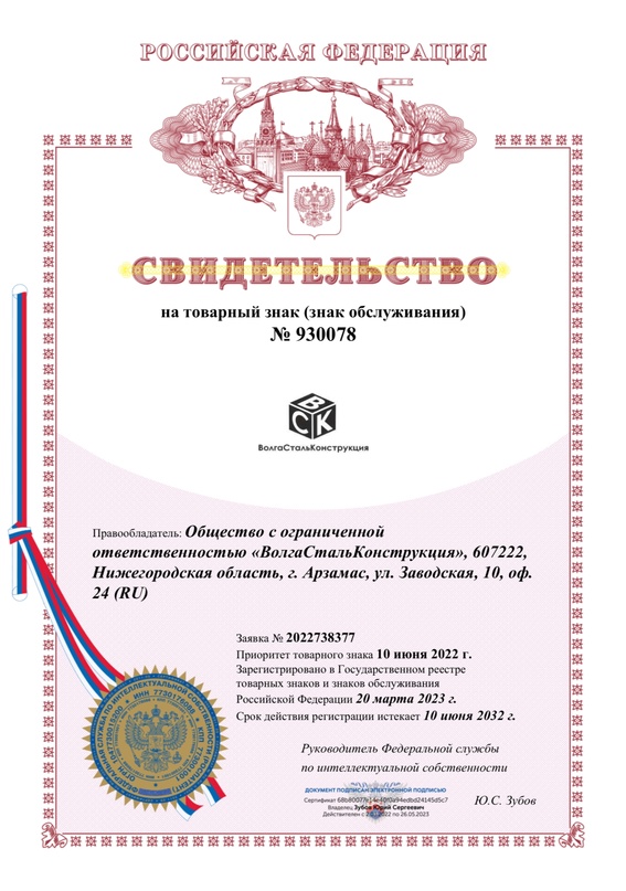 Официально зарегистрирован товарный знак ВолгаСтальКонструкция.